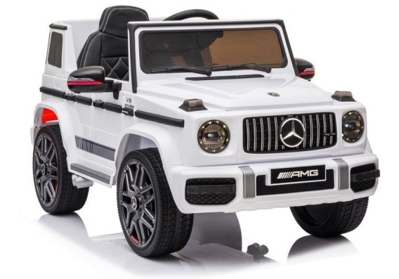 Biały Mercedes G63 AMG jest istnym połączeniem solidności, najwyższej jakości i militarnego wzornictwa. Pojazd ten sprawdzi się zarówno podczas codziennych jazd po osiedlu, jak i w czasie weekendowych wycieczek poza miasto. Znajdujące się „pod maską" dwa silniki o mocy 45W każdy w połączeniu z akumulatorem 12V4,5Ah umożliwiają jazdę w prędkości od 3 do 5 km/h, co z pewnością zrobi wrażenie nie tylko na małym kierowcy, ale i przechodniach.
